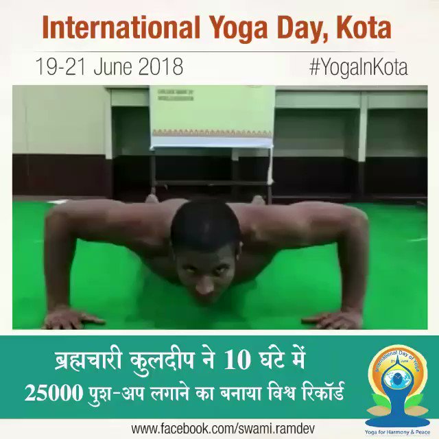 On the occasion of International Yoga Day, a man named Bhramchari Kuldeep from Patanjali has made a world record of doing 25,000 pushups in 10 hours. The video was shared by Baba Ramdev to showcase the power of Yoga to the masses.