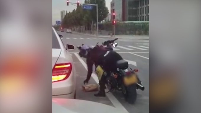 A CCTV footage from Beijing, China is doing rounds on Twitter and shows a car driver throwing garbage on the street. After a few seconds, a female biker stops beside the car and gives the driver an epic lesson. The biker stops, picks the garbage from the street and throws it back inside the car.